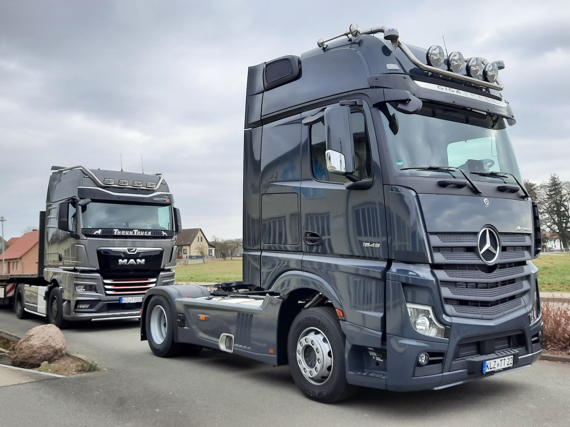 Der Fuhrpark beinhaltet das Aktuellste im Bereich der 40t-LKW. Mit unseren Fahrzeugen ist Thrun Trans mit neuster Motorengeneration und damit sehr umweltfreundlich am Start. Unsere Zugmaschinen entsprechen der Econorm 6 und sind im Schnitt 3 Jahre alt.
